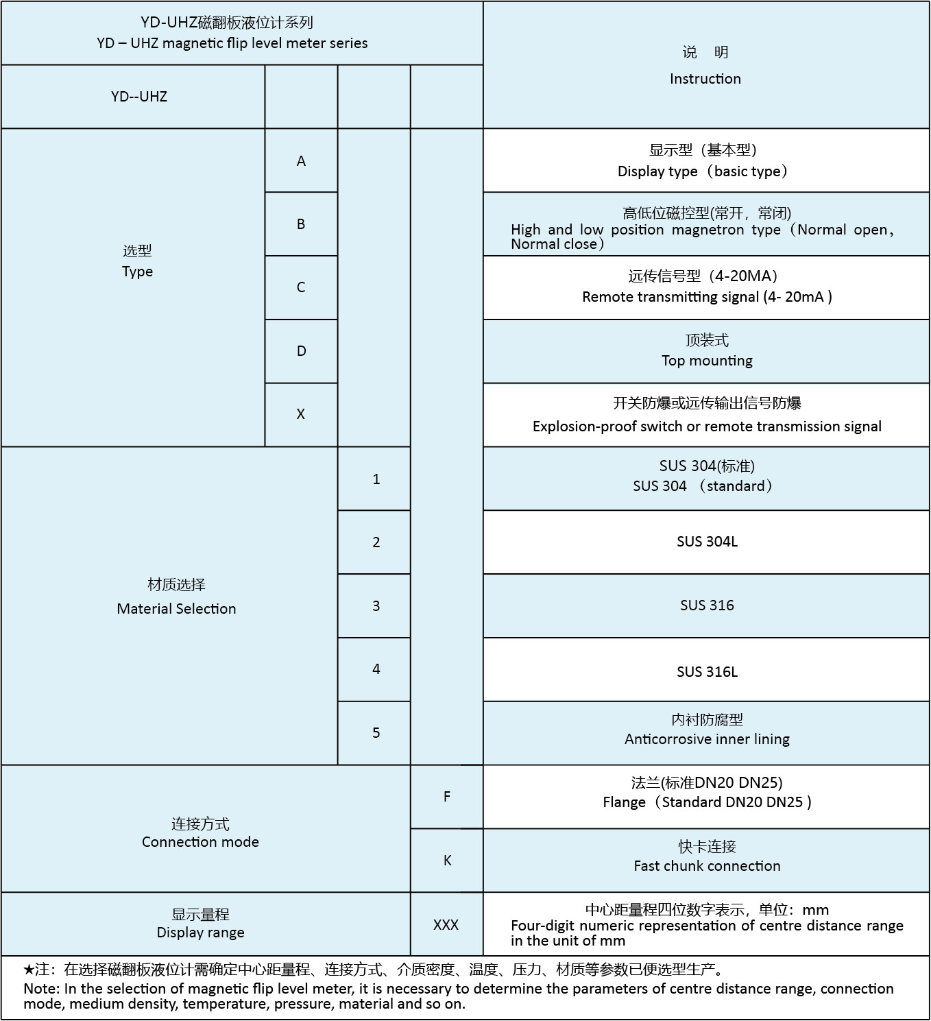 ★ 選型說明(míng) Model selection instructions